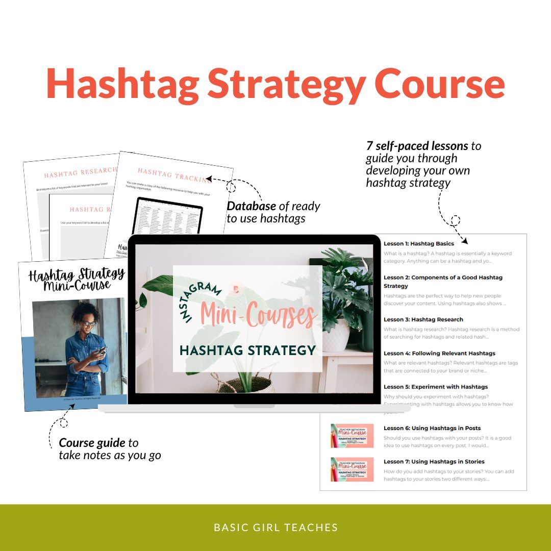 This mini-course walks you through detailed steps and strategies to research new hashtags, follow relevant hashtags, and add the right hashtags to your posts and stories (after you figure out what the right hashtags are for your business). Inside the course, you'll go through different lessons to guide you to make decisions and plans to solidify a strategy for regular research and consistent hashtag use.